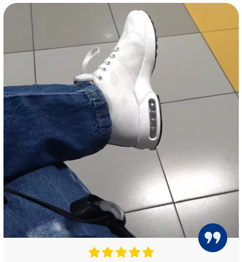 Da ich an der Rezeption eines Supermarkts arbeite, bin ich den ganzen Tag auf den Beinen. Diese Sneaker sind super bequem, die Sohle dämpft gut, es fühlt sich an wie Hausschuhe, ich bin sehr zufrieden!