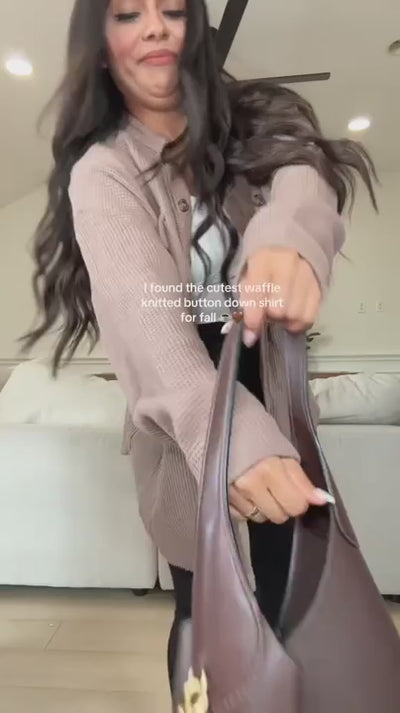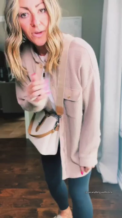 Fühlen Sie sich wunderbar, stilvoll und gemütlich – bestellen Sie noch heute Ihren Mila - Waffle Knit Cardigan und verleihen Sie Ihrer Garderobe ein sanftes Upgrade!