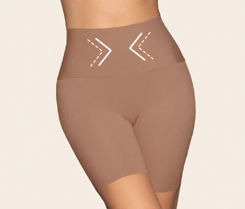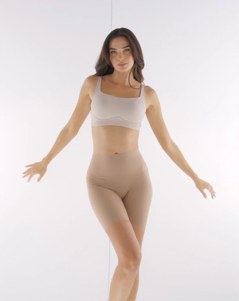 Die nahtlosen Slip-Shorts von SculptFit bestehen aus dickem, glättendem Stoff, der das Erscheinungsbild von Cellulite kaschiert und für ein glattes, ebenmäßiges Aussehen unter der Kleidung sorgt.